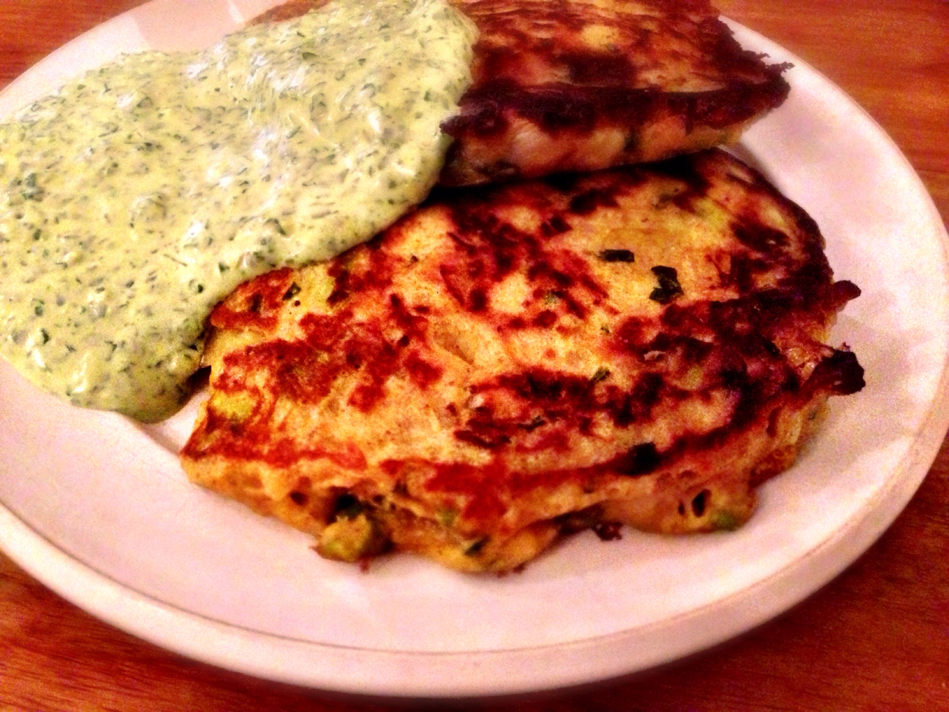 Fry them like pancakes and they go all fluffy in less than 5 minutes – mainly due to all the self raising flour and baking powder.