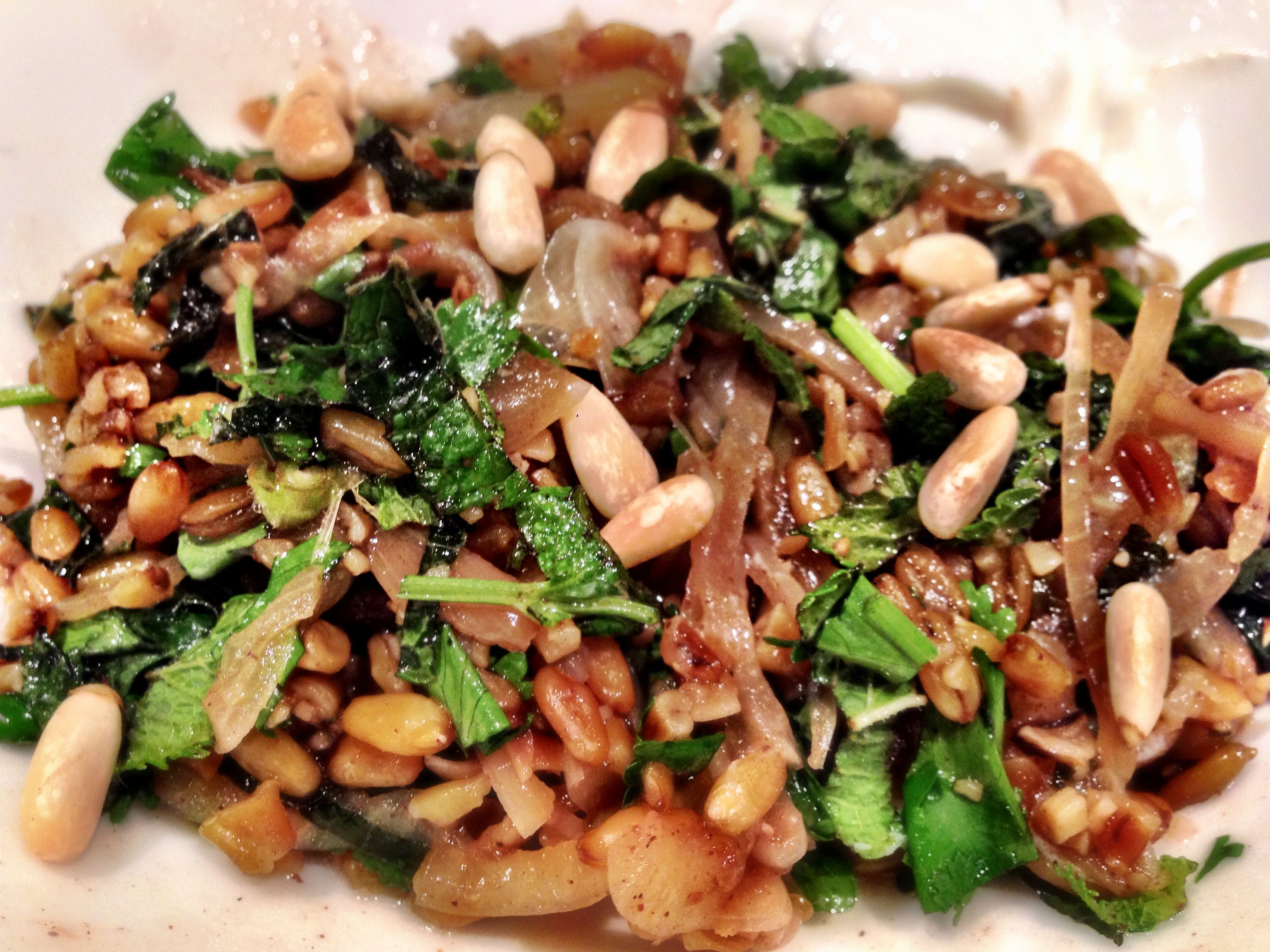 When I read through the recipe I thought this would be a #FAIL. It is very basic. Caramelise some onions, add the freekeh, add stock and serve. Sounds dull, but the addition of lots of herbs (mint and coriander) at the end, and the use of a very good stock made this an incredibly tasty meal. It’s got a very earth, molasses’y flavour.