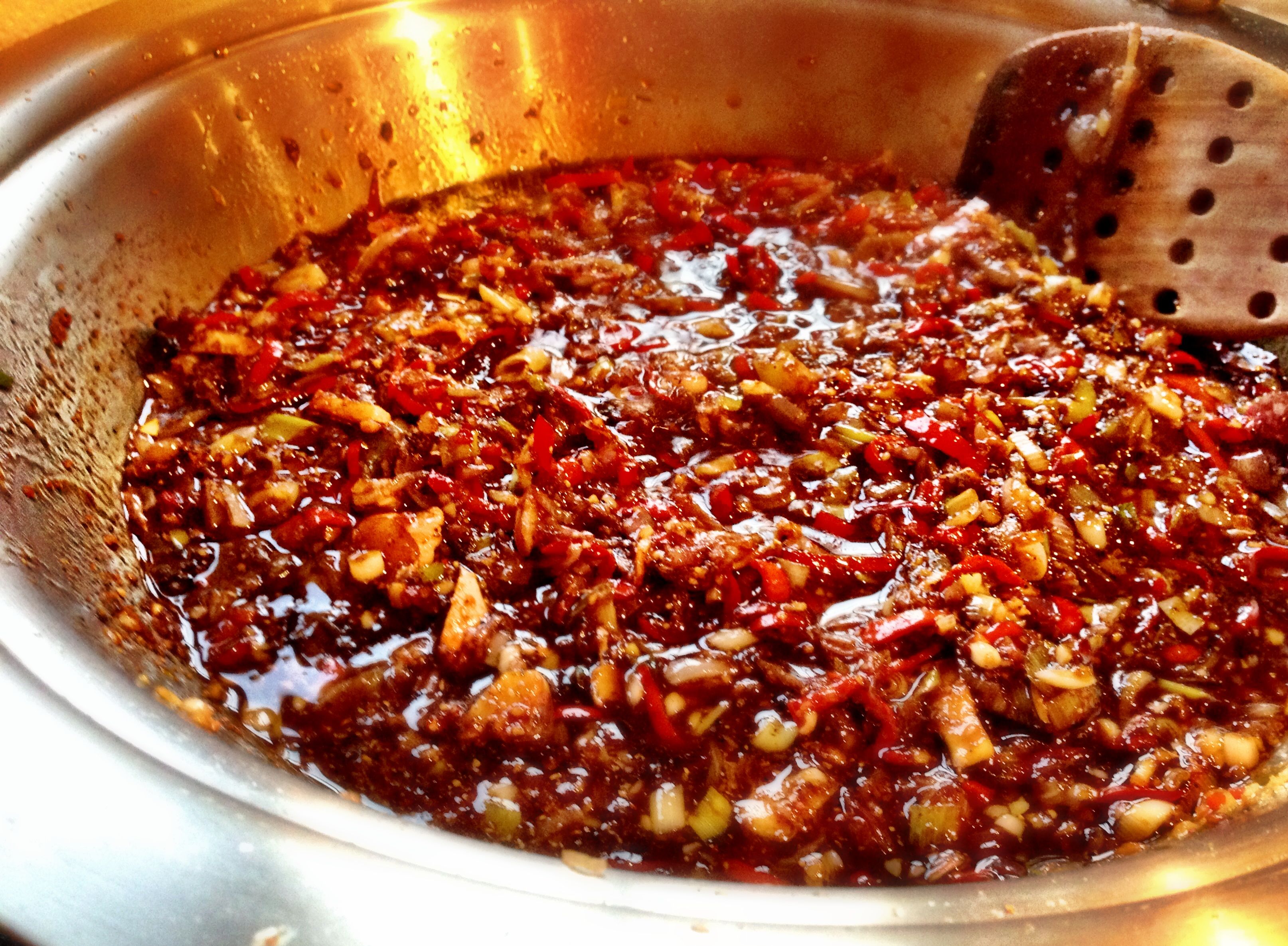When you look at the ingredients for this recipe you’ll realise what I mean. There are 8 red chillis, 12 garlic cloves, 5 tablespoons of black pepper, 3 tablespoons of ginger, and 12 shallots. Hopefully Ottolenghi won’t tell me off for giving out the quantities here – but it does make you think ‘gee that’s gonna be hot’!