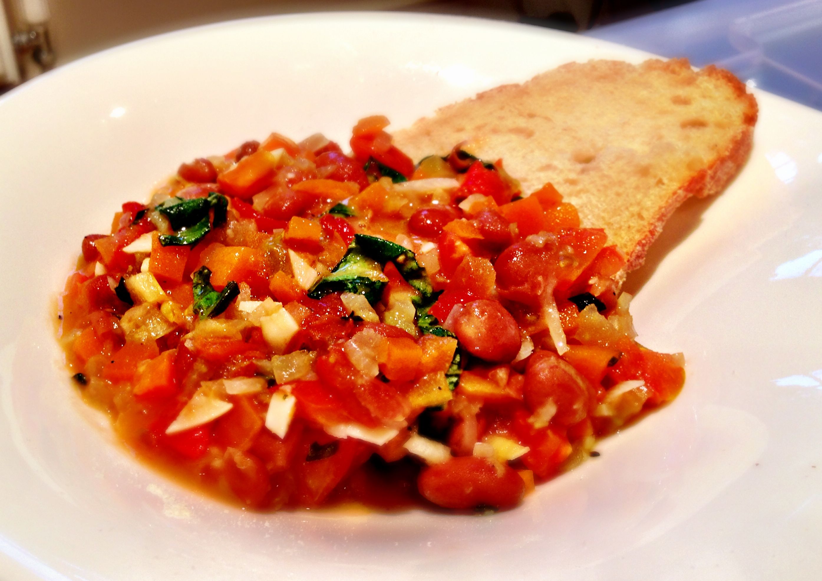 This dish is also from Maria Ella’s ‘The Modern Vegetarian’ – and was pretty easy – and is really just one of those ‘throw it all in a pan’ affairs. The end result is ‘posh beans on toast’ (if you serve it with toast!).