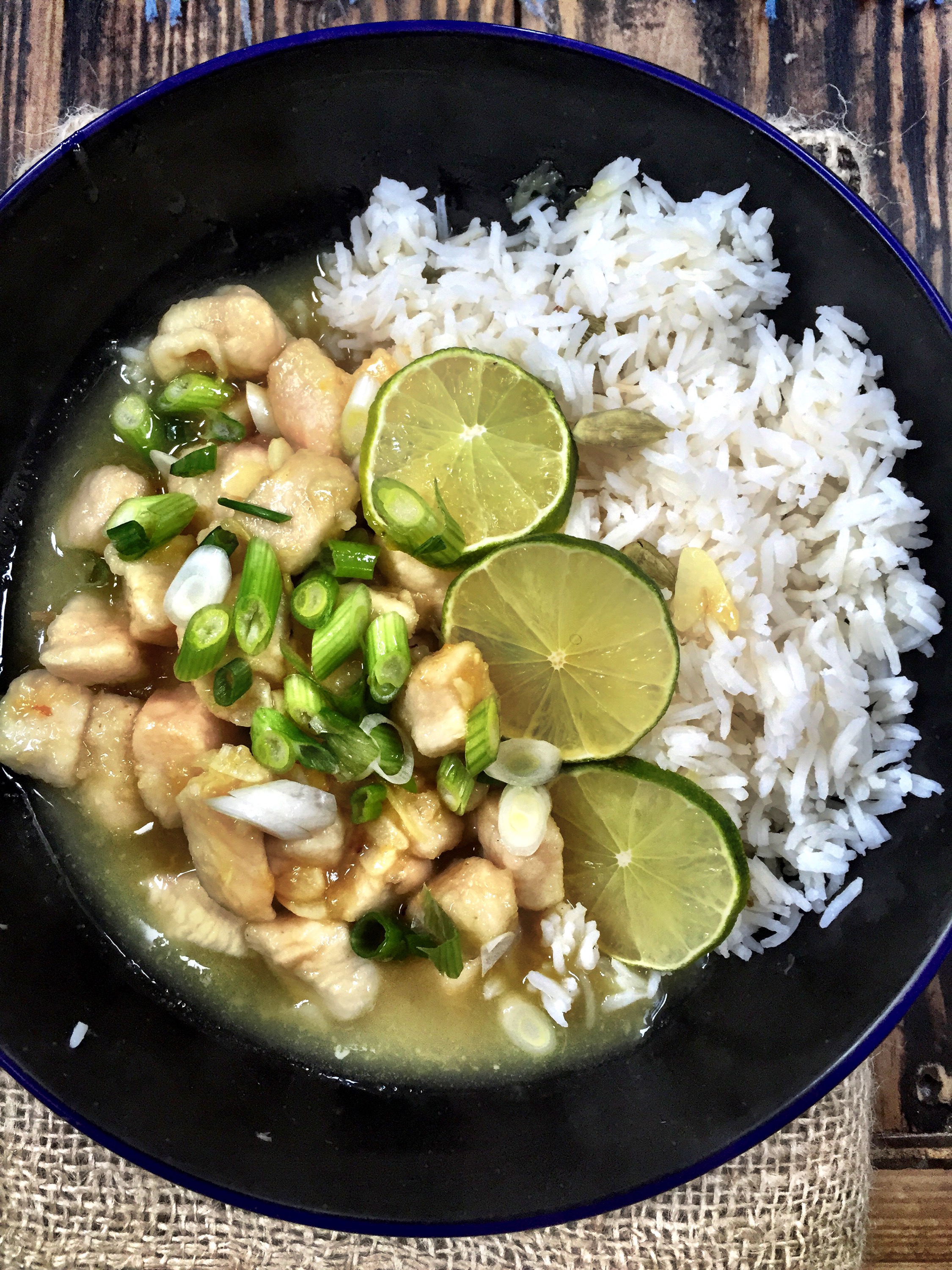 Last but not least sprinkle some spring onions on top. I served mine with a few lime slices because I ran out of lemons!