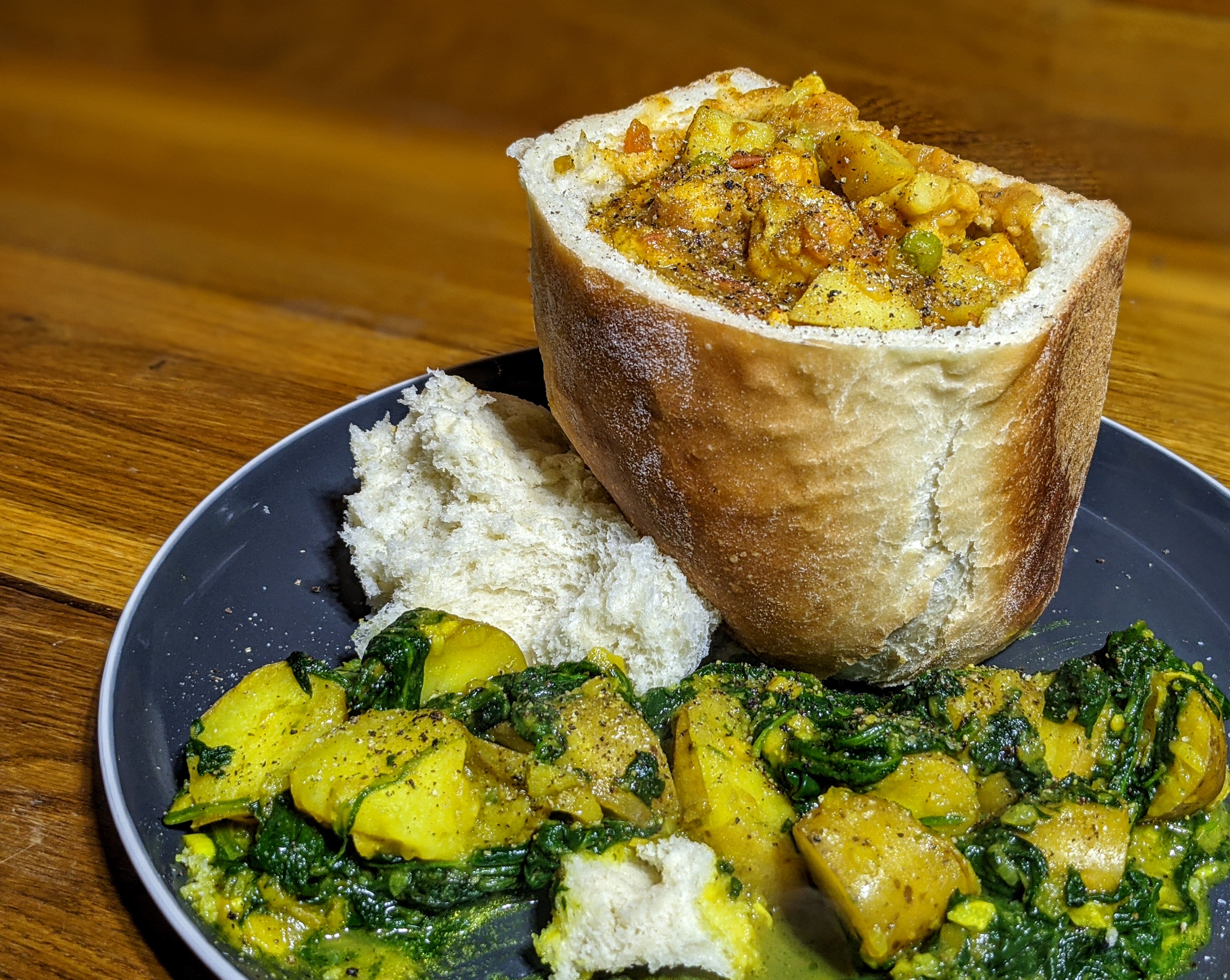 That said, my wife managed to make 40+ new breads, including this standard loaf which is perfect for a Bunny Chow – or in this case a Vegetarian Chow.